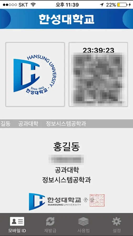 한성대학교 내에서 사용 할 수 있는 모바일 신분증 애플리케이션입니다.