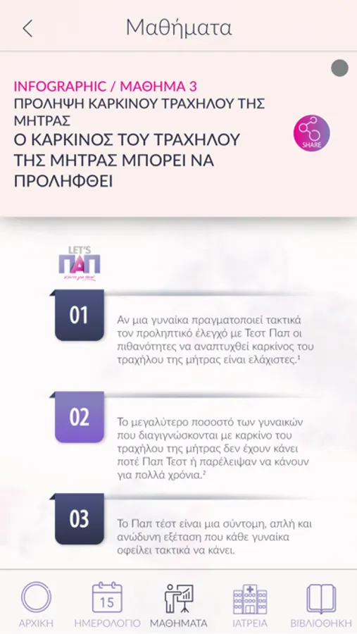 • έχεις πρόσβαση σε μια σειρά δια δραστικών μαθημάτων για την πρόληψη του καρκίνου του τραχήλου της μήτρας και του ιού HPV