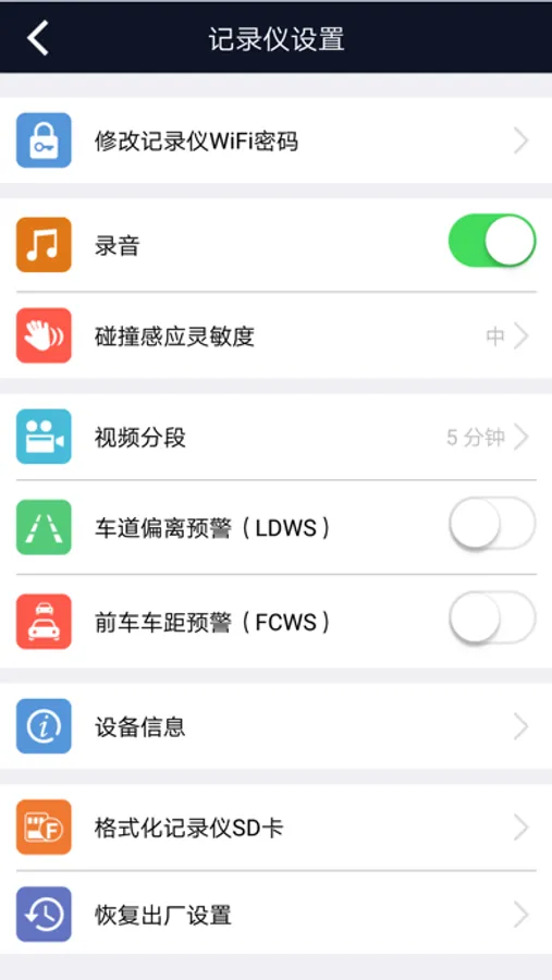 手机APP通过WiFi能实现对行车记录仪的直播、回放、下载和设置等。