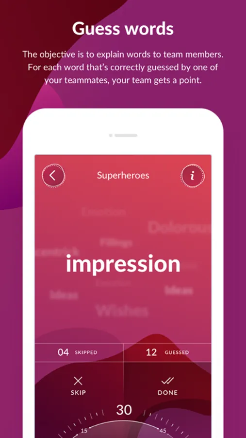 Alias or Charades - guess word board game" is a new free version of the world-famous activity Alias board game. The objective of Alias is to explain words to team members. For each word that's correctly guessed by one of your teammates, your team gets a point. Our app lets you play Alias anywhere without a ton of paper cards and a board.