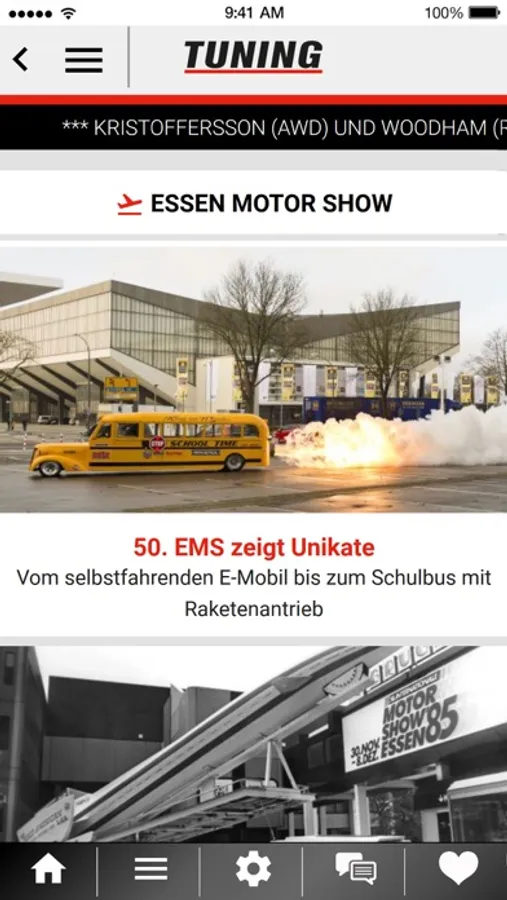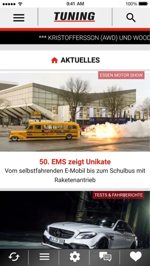 # Magazin mit brandaktuellen Meldungen von Tunern wie ABT, AC Schnitzer & Co., Zubehörherstellern von Felgen wie BBS, Vossen, GTI, … Fahrwerken wie KW, ST suspensions, H&R, Bilstein … Abgasanlagen wie Akrapovic, Remus, BullX sowie über Weltpremieren, Autos, Concept Cars, Events, Shows und vieles mehr!