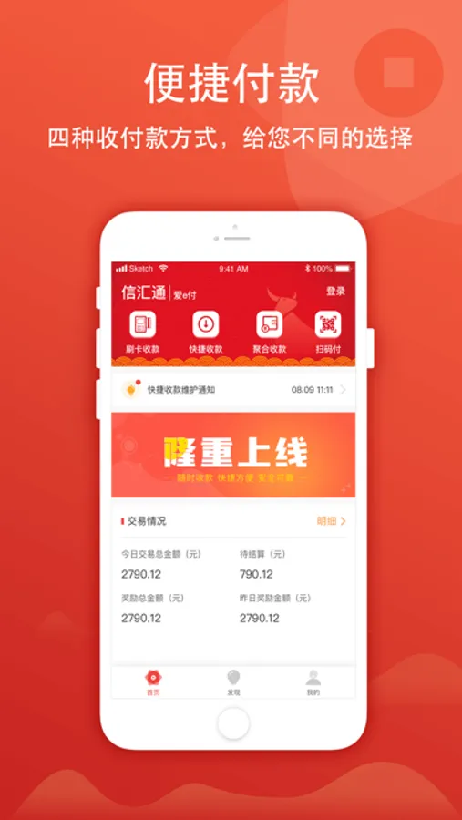 快捷收款、扫码支付、网关支付、刷卡支付等收款方式