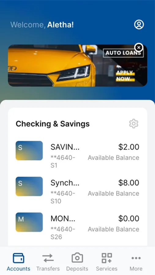 · Transfers: account to account, scheduled, pending ACH and check withdrawal transfers are available