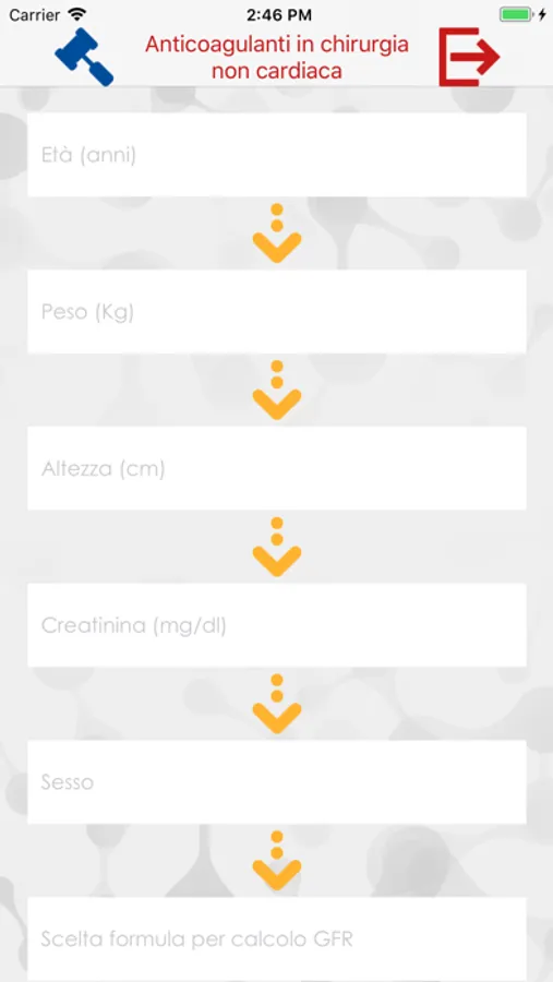 · nel caso di TAO, al Medico è chiesto di indicare quale sia il rischio tromboembolico del Paziente in caso di scelta di un AVK, scegliendo tra sei condizioni possibili, e quale tra le quattro procedure chirurgiche previste (odontoiatriche minori, dermatologiche minori, cataratta, interventi per cui non è possibile la compressione per favorire l’emostasi locale) sia quella che sarà praticata. Anche in questo caso, il software calcola automaticamente lo score CHA2DS2-VASc e del GFR e mostra le indicazioni delle linee guida sull’appropriatezza dell’uso del farmaco scelto e sulle modalità di uso dello stesso; inoltre è disponibile una schermata riassuntiva sugli antidoti disponibili e, nel caso di interventi per cui non è possibile la compressione per favorire l’emostasi locale, anche una sezione dedicata alla bridging therapy.