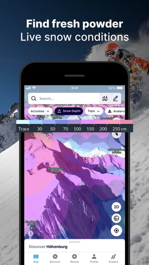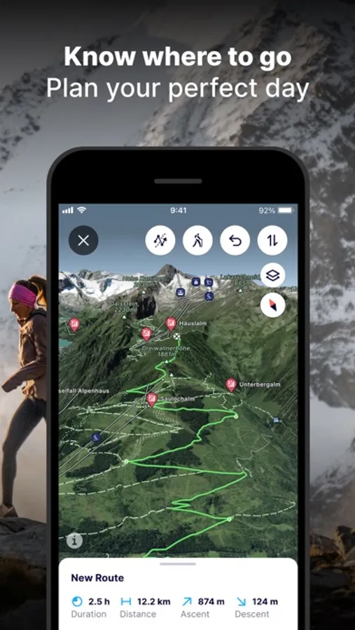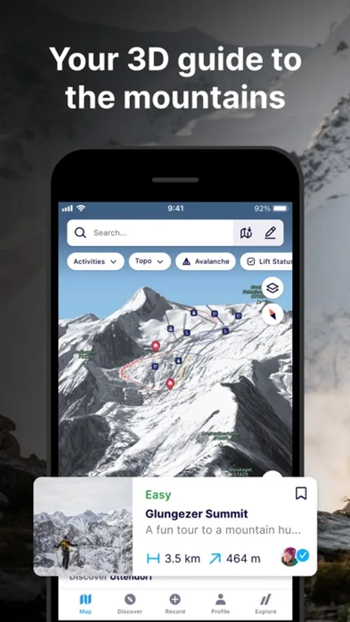 Explore the mountains with confidence with the world's most advanced 3D outdoor map. Plan the perfect route, orientate and navigate along the way, record your day and share it with the community.