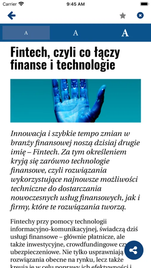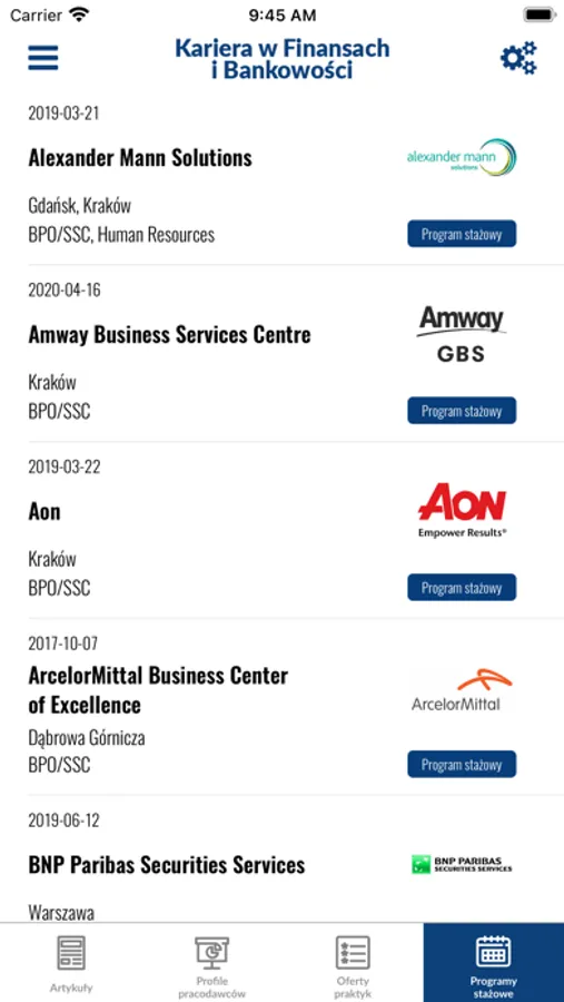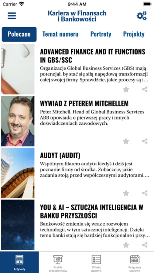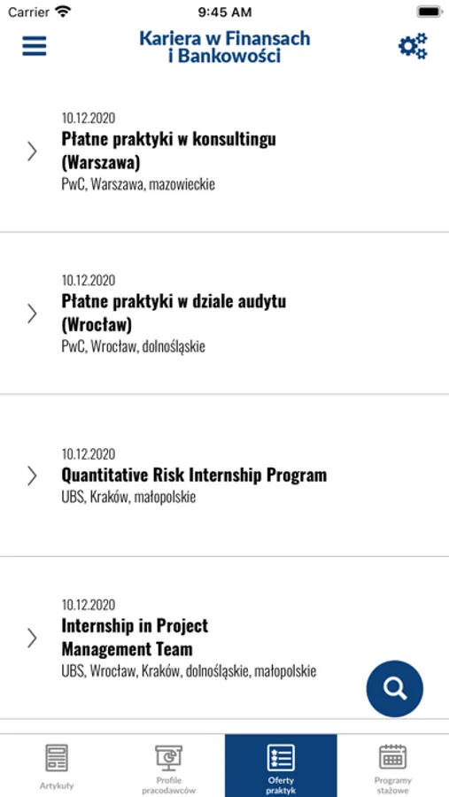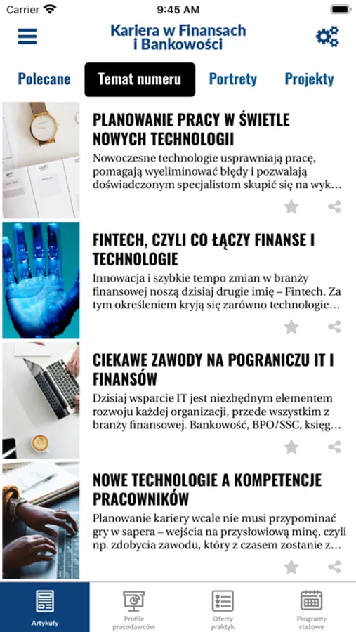 Use the app to save your favourite articles and apply for internships. Create a candidate account on KarierawFinansahch.pl, upload your CV and apply for jobs with a single click.