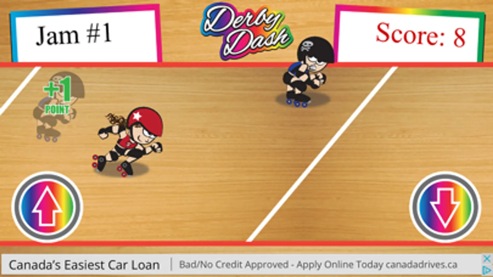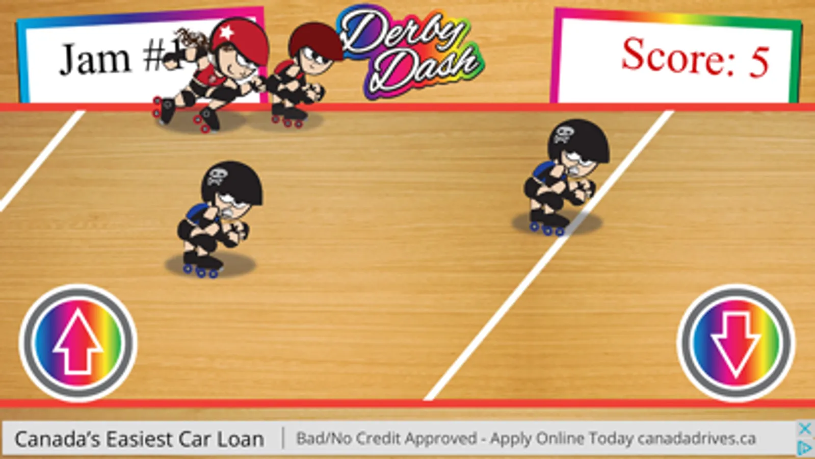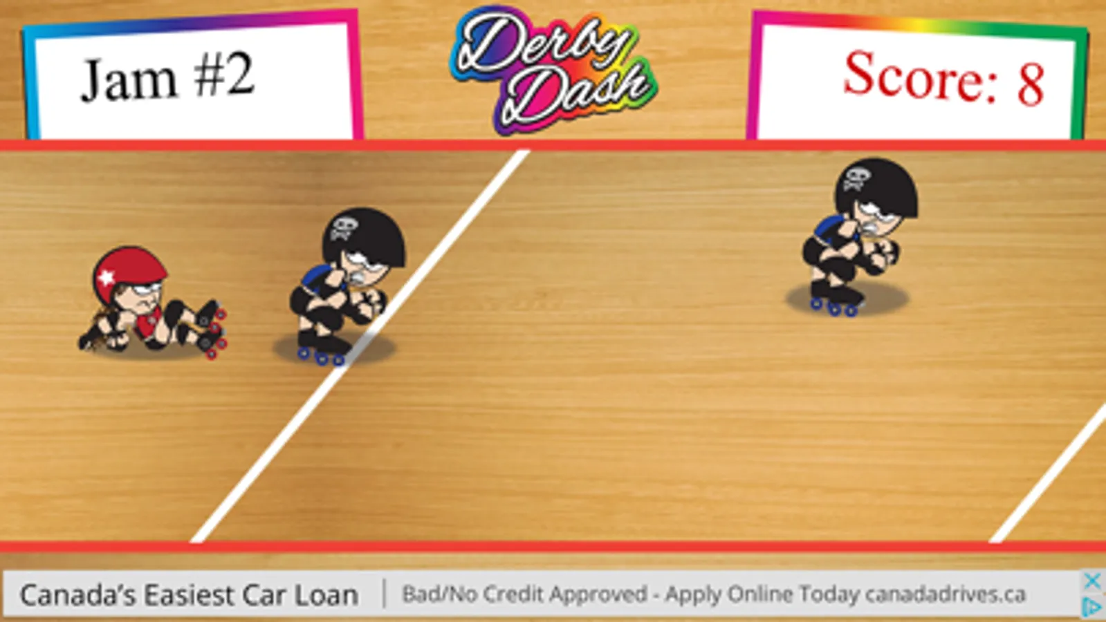 Play Derby Dash and experience the fun of jamming in a flat track roller derby game. Easy-to-use-controls move your player in two directions to out-maneuver your opponent blockers. Earn a point for every blocker you get past. How many jams can you make it before you get blocked?