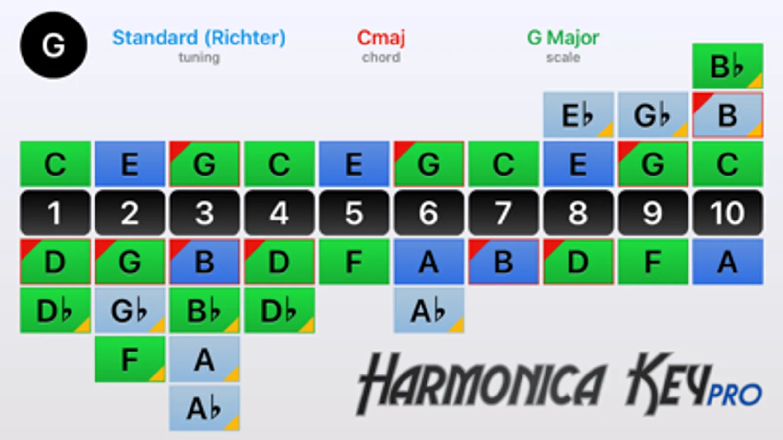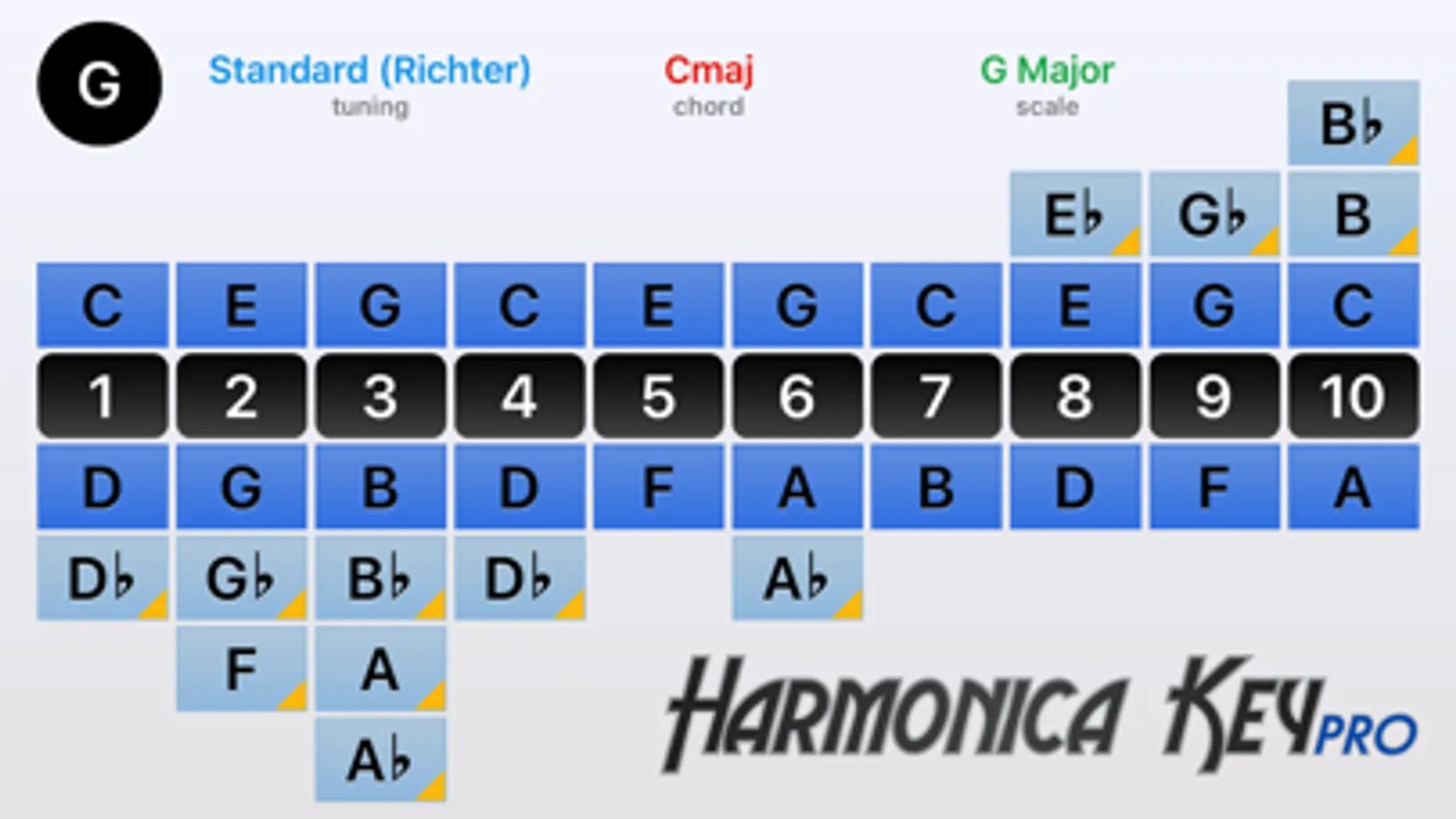Harmonica Key Pro lets you unleash the power of your harmonica. Use it to quickly reference keys, positions and scales between the most common harmonica tunings.