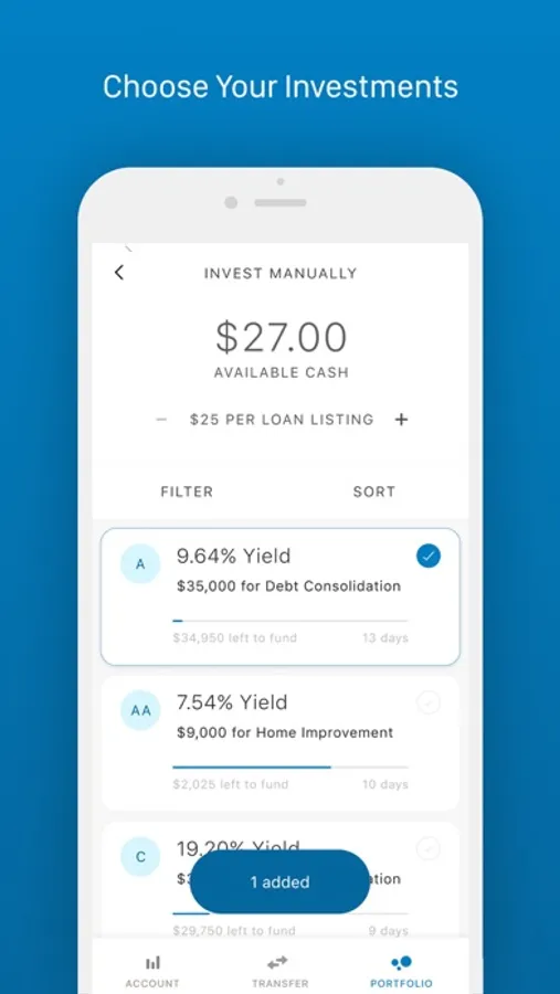 * Invest manually by browsing and selecting from individual loan listings