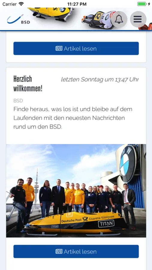 All dies kannst du hautnah erleben – mit der offiziellen App des Bob- und Schlittenverbandes für Deutschland e.V. Einfach installieren und alle News zu den Nationalmannschaften, Wettbewerben und AthletInnen sowie vielen weiteren Aktivitäten des BSD landen sofort auf deinem Smartphone oder Tablet. Kostenlos und ohne Registrierung.