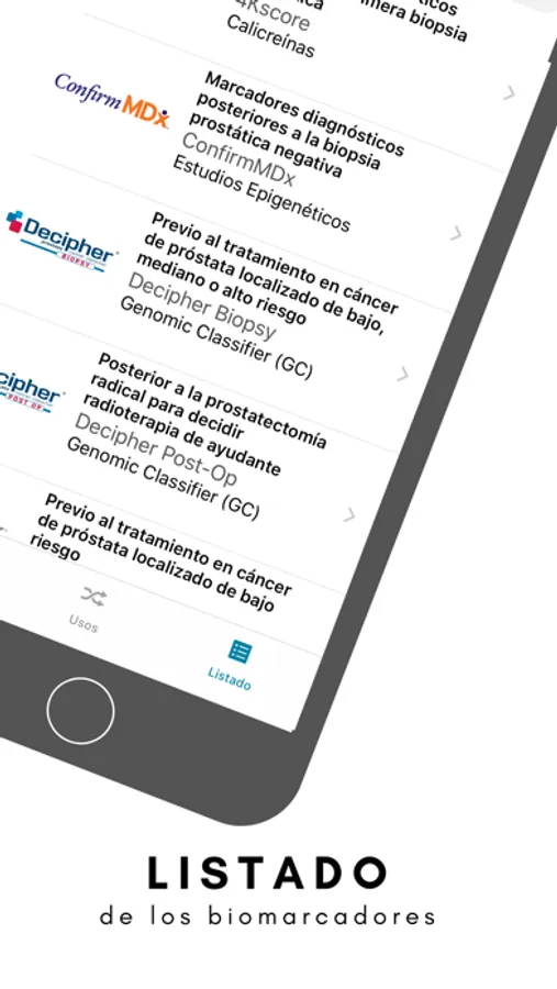 Uro-BioM permite visualizar de forma dinámica los marcadores biomoleculares recomendados para cada situación, ya sea de uso diagnóstico o terapéutico/pronóstico, con su conducta e información.