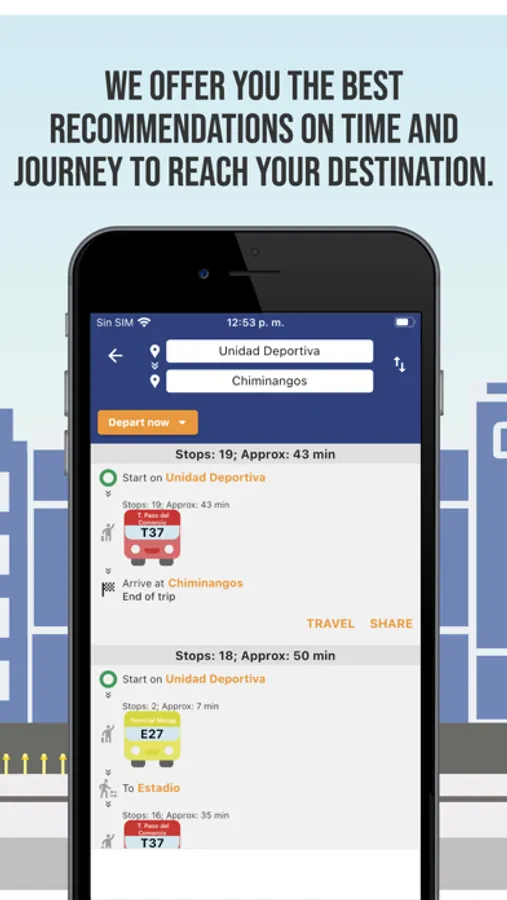 Calculates the Origin - Destination route to reach any place in the system with the fewest number of interchanges and the fewest number of transfer stops. You can choose the day and time on which you want to do the tour so you can plan your trip in advance. For each bus, all schedules are shown and active schedules are highlighted.