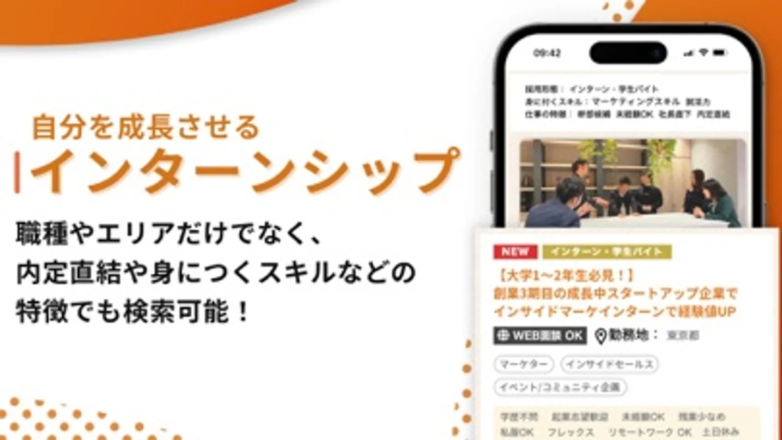 ・長期インターンシップ、サマーインターンシップ、ワンデー仕事体験など自分にあったインターンシップを見つけたい