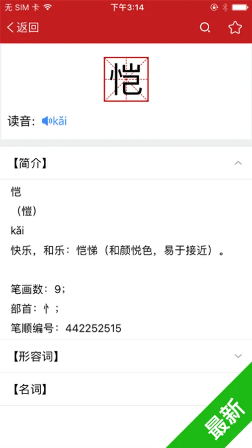 2、对每个汉字都有基本解释,有的同时拥有详细解释