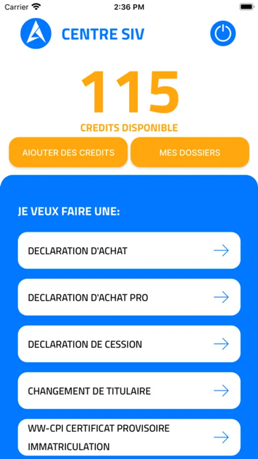 CENTRE SIV est une application mobile professionnel Autocerfa permettant de réaliser avec votre smartphone les démarches administratives dans le cadre du SIV (Système d'Immatriculation des Véhicules). L’application vous permet d’enregistrer facilement en ligne vos achats et ventes, relié directement au Système d’Immatriculation des Véhicules de votre préfecture.