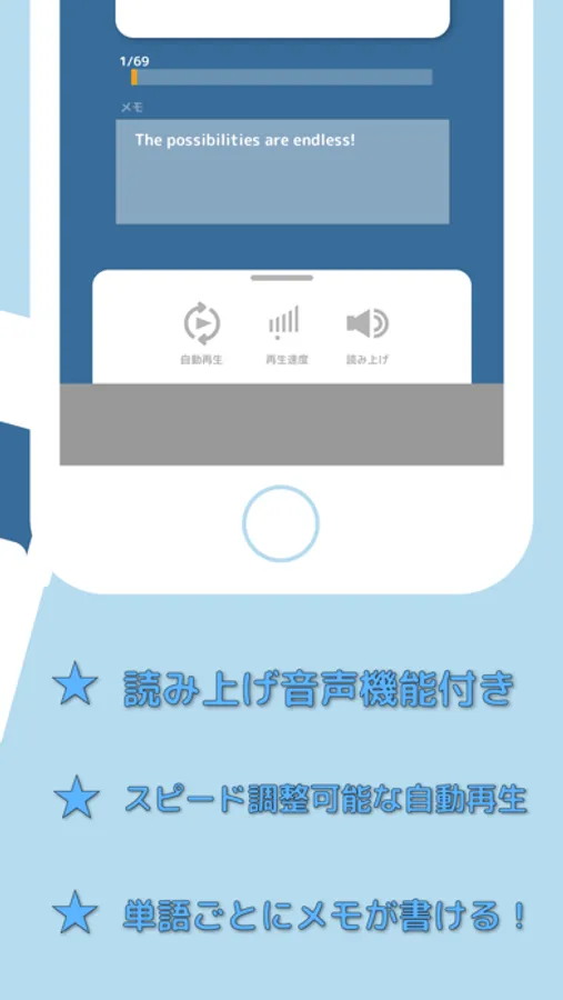・付箋・ブックマーク機能付きで、覚えにくい単語は何度も練習できる