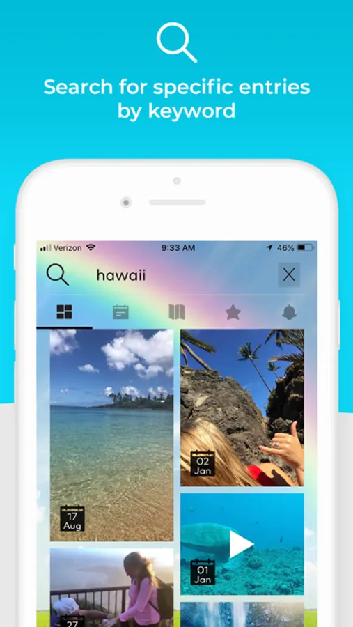 Ever tried to find a photo stored in your phone, only to have to scroll through hundreds – or thousands – of other photos or videos first? When you post to My Life Journal, you’ll be able to search through your previous posts using keywords and tags, making it super quick and easy to find specific photos, videos, audio files and journal entries.