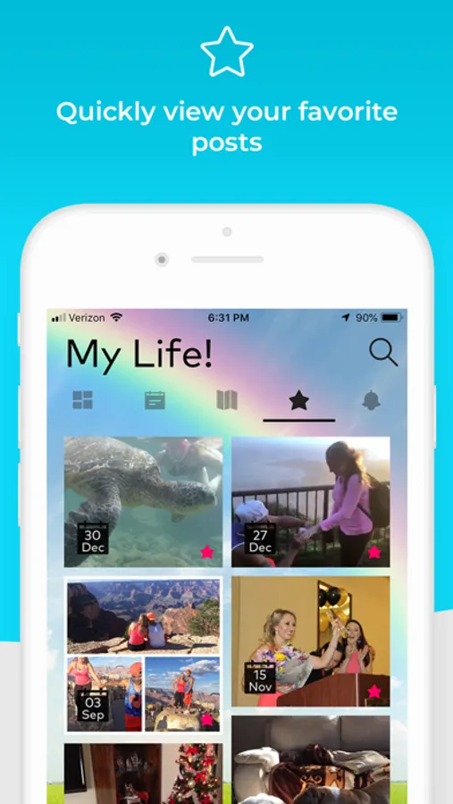 • Mark your most epic moments and memories as favorites to easily find
