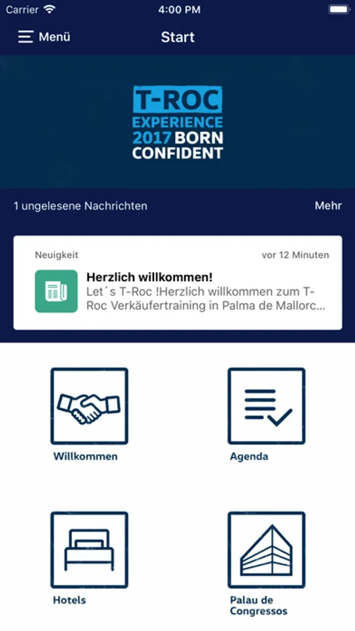 The Volkswagen Global Events App is the mobile app for all invited and registered participants of internal events at the Volkswagen Group.
