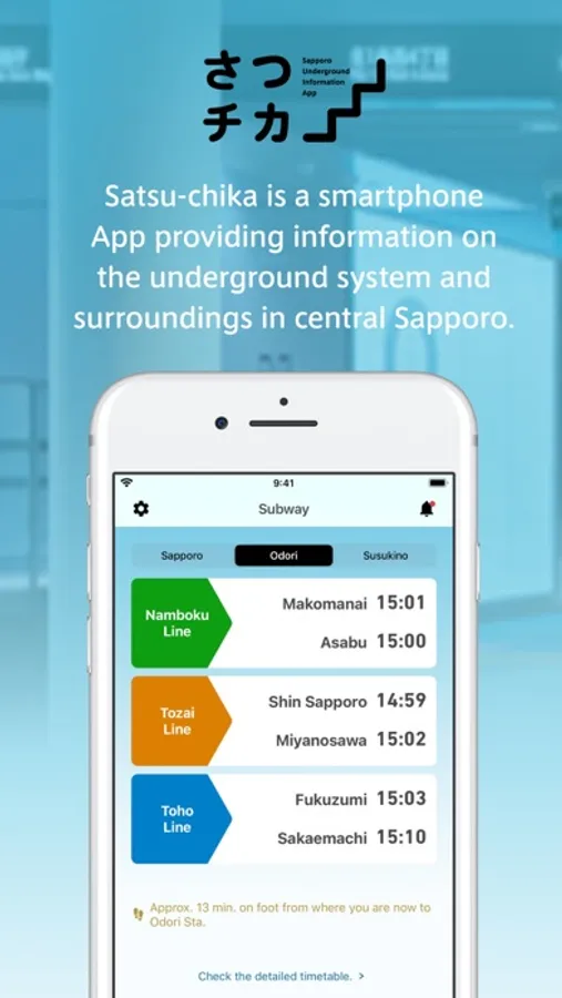 Satsu-chika is a smartphone App providing information on the underground system and surroundings in central Sapporo.