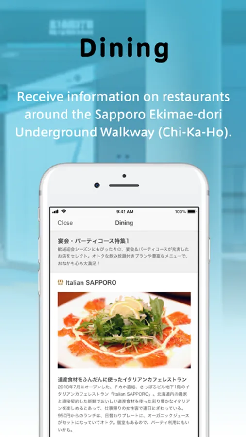 Dining function to receive information on restaurants around the Sapporo Ekimae-dori Underground Walkway (Chi-Ka-Ho)