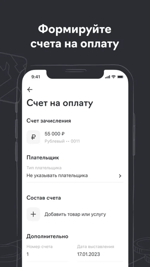 - Выставлять счета на оплату