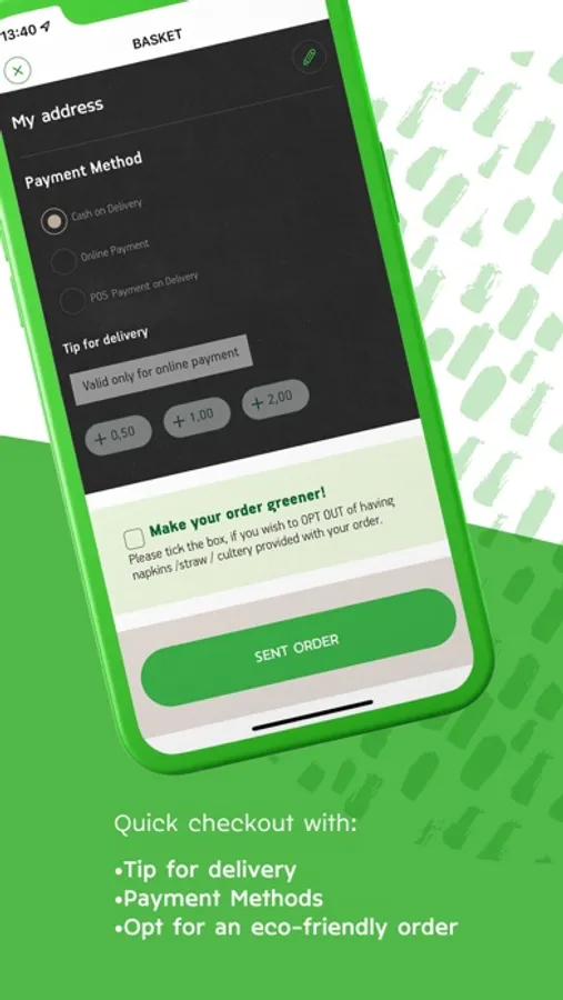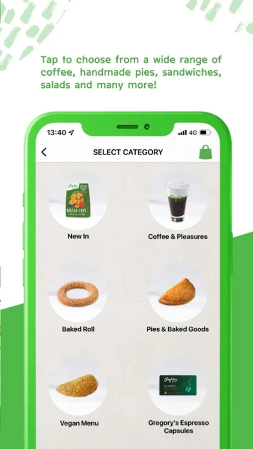 - place your orders easily and quickly, selecting from a wide range of handmade pies, sandwiches, salads and pastries