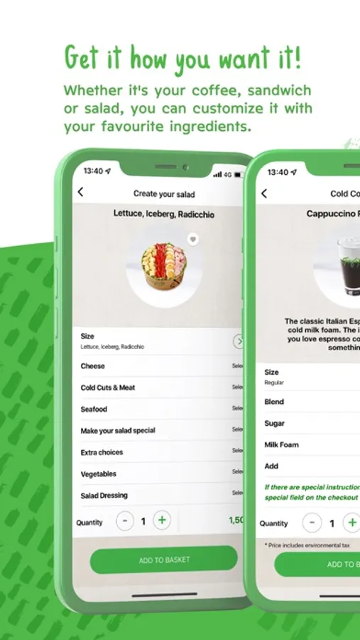- order your favourite coffee or any other hot or cold beverage, such as hot chocolate, tea, freshly-squeezed orange juice or a mixed fruit juice