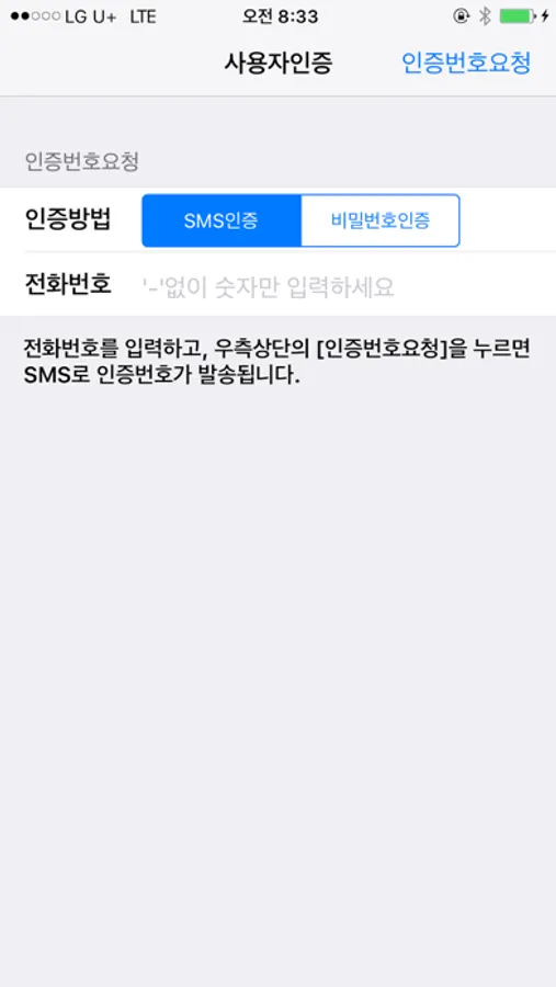 ** 보안 : 휴대폰 번호 인증 또는 비밀번호 인증