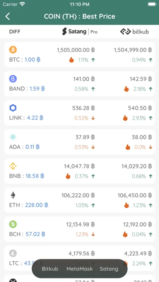 - Crypto : BTC, ETH, DOGE, KUB, SAND, ADA, NEAR, GALA, DOT