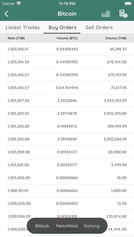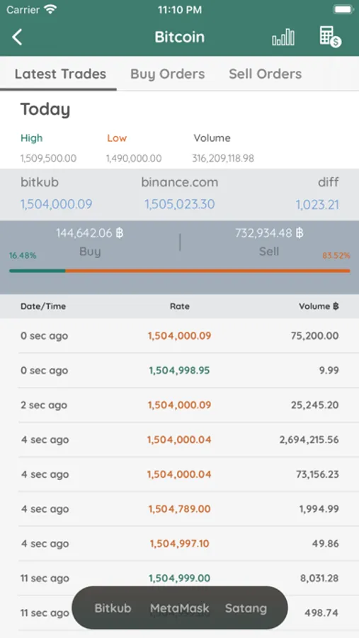 - Real Time Latest Trades, Buy Order, Sell Orders
