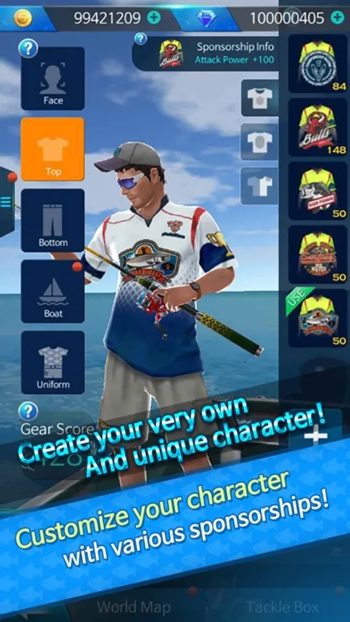 - Attach sponsorships and gain unique bonus effects for your angler!