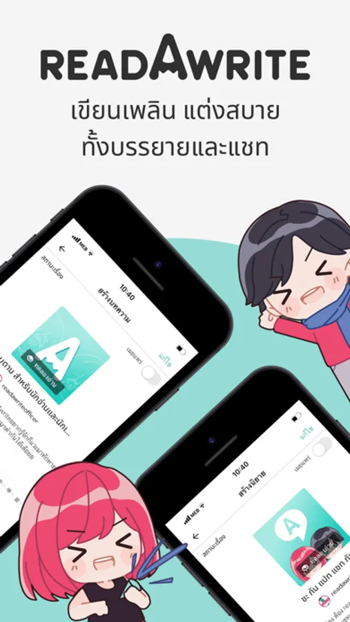 แถมยังเอาใจนักเขียนและนักอ่านนิยายแชท ด้วย readAchat (รี้ดอะแชท) นิยายแชทน้องใหม่ ไฟแรงเว่อร์ แต่งนิยายผ่านแอปฯ และในคอมฯ ได้ทุกที่ทุกเวลา เลือกหมวดหมู่ได้ตามสไตล์ที่คุณชอบ