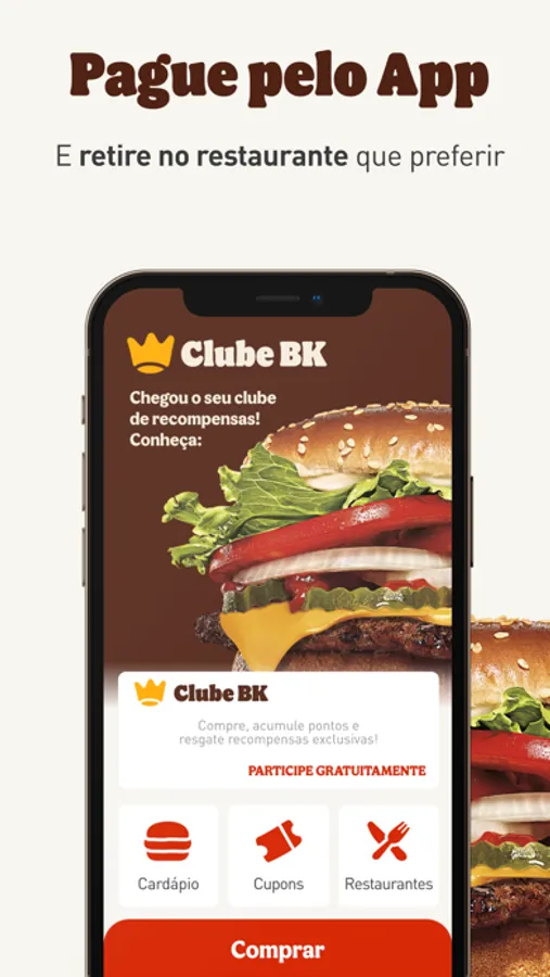Para participar do Clube BK, basta se inscrever no programa na aba Clube BK!