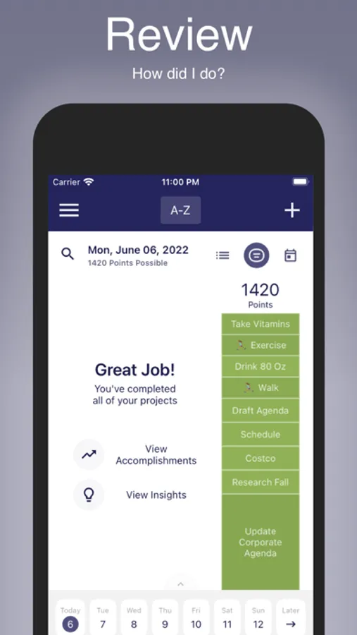 Rescheduling happens. If you have to move a project to another day, just drag-and-drop it into the new day at the bottom of the screen.