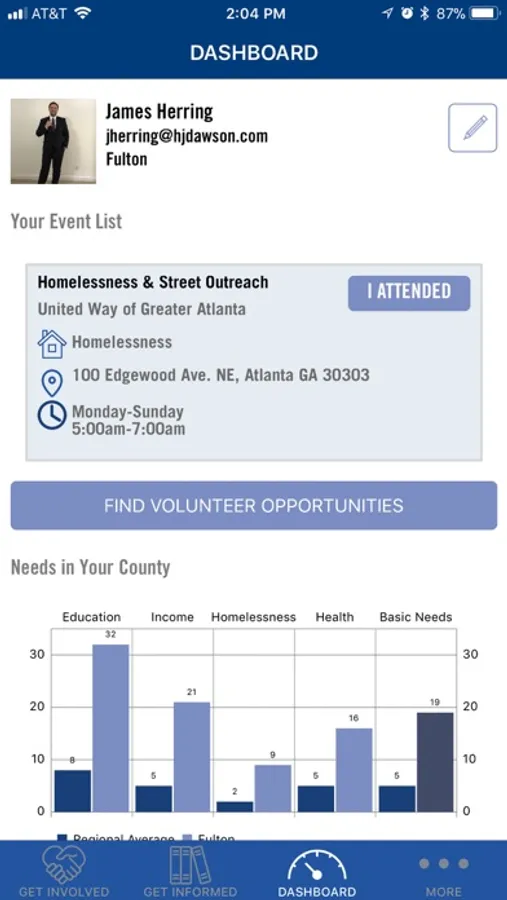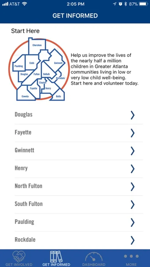 Volunteering through United Way of Greater Atlanta is a great way to give back to your community and meet your peers. The VolunHere app is an interactive solution that will help you Get Involved and Get Informed on some of the most important issues facing our communities today. Live United by volunteering throughout United Way of Greater Atlanta’s 13-county region. In a few easy steps, you can find volunteer events near you for 100’s of local nonprofit organizations and learn how to help improve the well-being of children and families. Select events based on your time, talents and interests, such as Health, Income and Education. Plus track your participation in a single-view Dashboard. Pick your passion and start volunteering today!