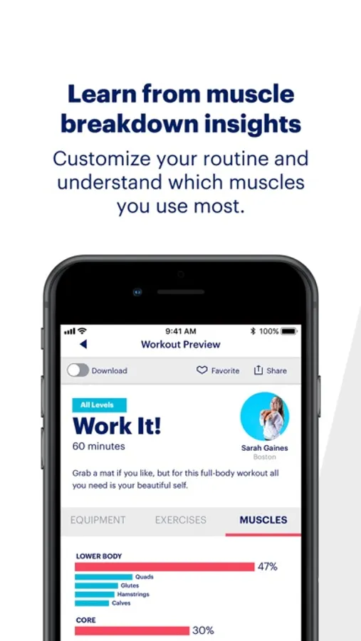 •Choose workouts targeting specific muscle groups, like core/abs, upper body, back and butt, and more