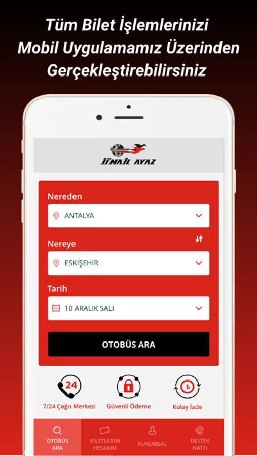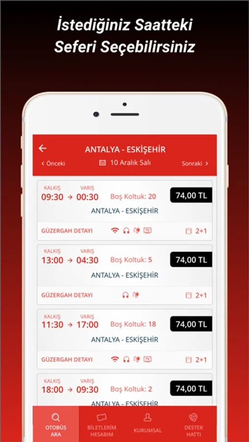 Uygulama üzerinden; seferleri görebilir, bilet alım işlemlerinizi yapabilirsiniz.