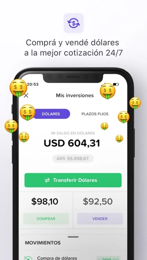 - Compra y venta de dólares las 24 horas del día, todos los días del año.