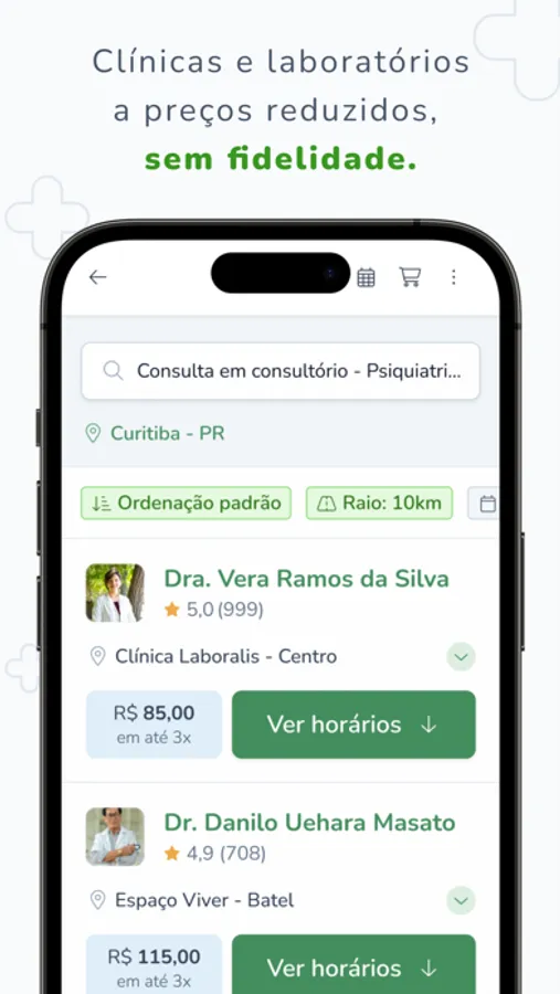 Busque consultórios, clínicas e laboratórios disponíveis em sua cidade. Não encontrou o que precisava? Preencha pelo próprio app um pedido para que nossa equipe amplie as opções de locais e horários.