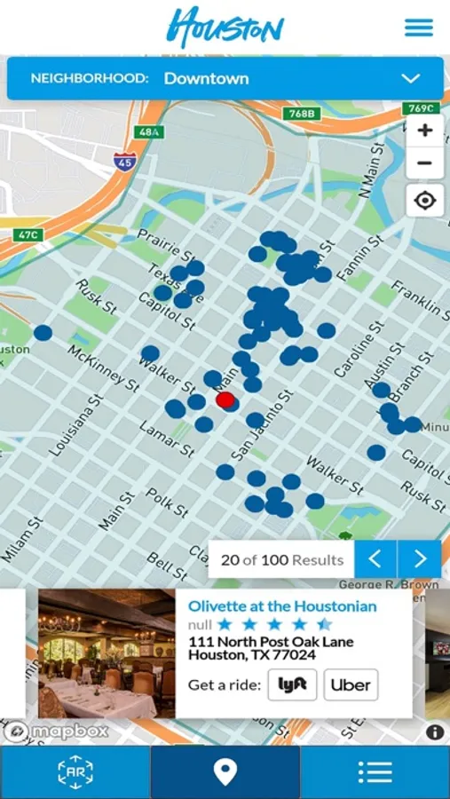 The VisitHouston AR Browser exposes the leisure traveler to the quintessential Houston experience through an augmented layer of reality. Explore curated experiences in Houston from “Restaurants” and “Things to do” to “Nightlife” and “Hotels” all through the lens of your phone.