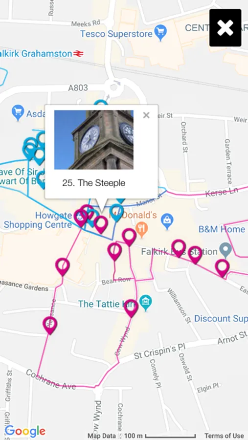 The app was created as part of the Falkirk Townscape Heritage Initiative (THI). This was supported by: Heritage Lottery Fund, Historic Environment Scotland, Falkirk Community Trust, Falkirk Council, Falkirk Delivers and Visit Falkirk.
