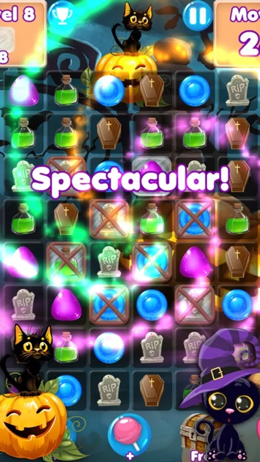Cute Halloween Games & Treats is a fun matching puzzle game for cute monsters and sweet candies just for Halloween! Go on a candy collecting adventure with all the spooky costumes! Challenging puzzles give you endless hours of amazing haunted fun!