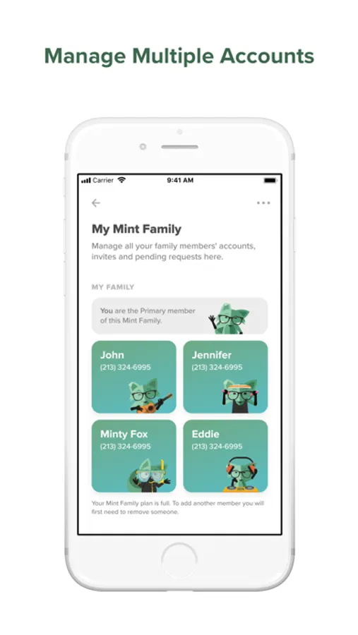 • Create a Mint Family and manage up to 4 Mint accounts under one login