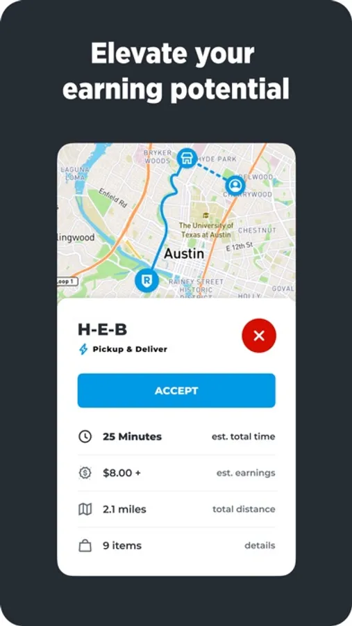 Ready to hit the road? The sign-up process is quick and easy so you can get on your way—no delivery experience necessary. To get started, you’ll just need to be 18 or older with reliable transportation, a valid driver’s license, and a clean record.