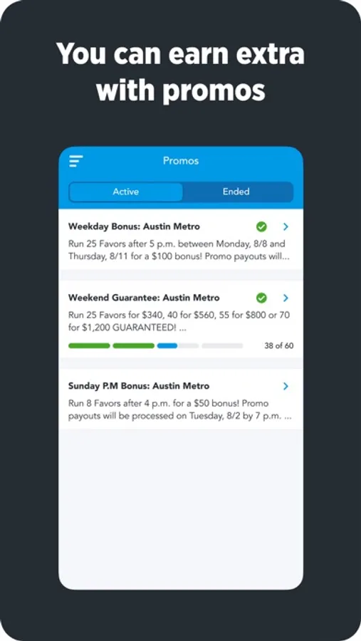 Favor is designed to fit your schedule. From when and where you deliver to how often you get paid, it's completely up to you!