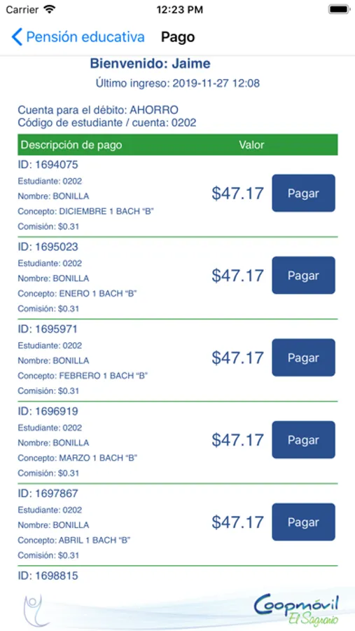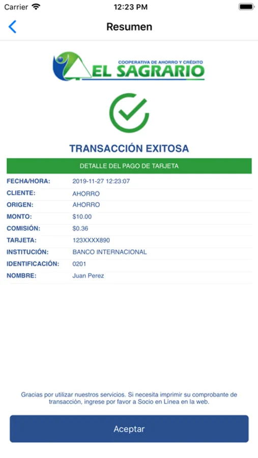 El aplicativo móvil de la Cooperativa El Sagrario cuenta con varias funcionalidades para realizar transferencias de dinero, pago de servicios básicos, pagos de tarjetas de crédito, recargas electrónicas, entre otras; garantizando la confidencialidad y seguridad de la información.