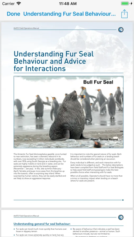 • Quickly and easily view IAATO and Antarctic Treaty System information required by Expedition Field Staff including guidelines for; visiting Antarctic Visitor Sites, wildlife watching, being a responsible Antarctic visitor and preventing the introduction of non-native species.