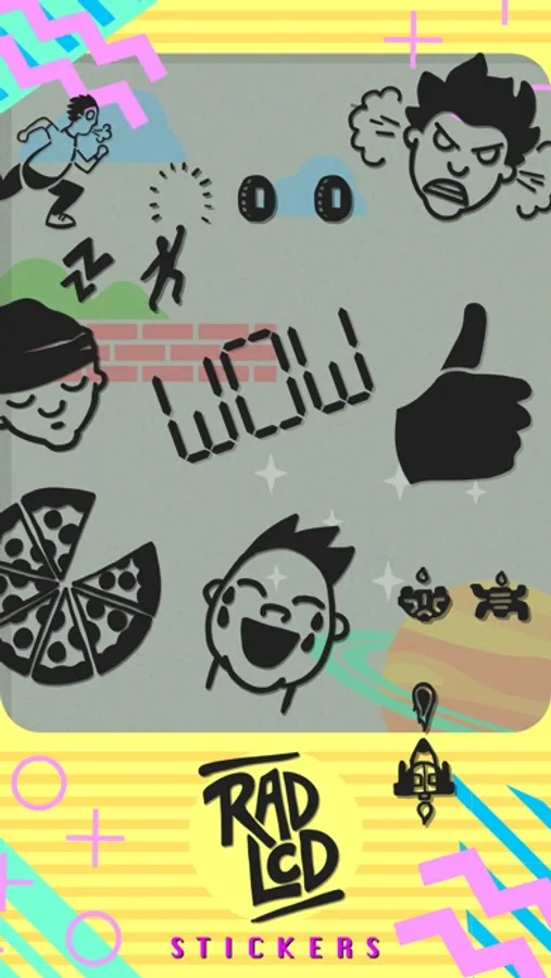 RAD LCD is a sticker pack inspired by the simple graphics and choppy animation found in the LCD games of the past. Combine over 30 animated stickers with the provided static backgrounds for the full effect of this retro style. There’s even a few wacky animated backgrounds inspired by 80s and early 90s design.