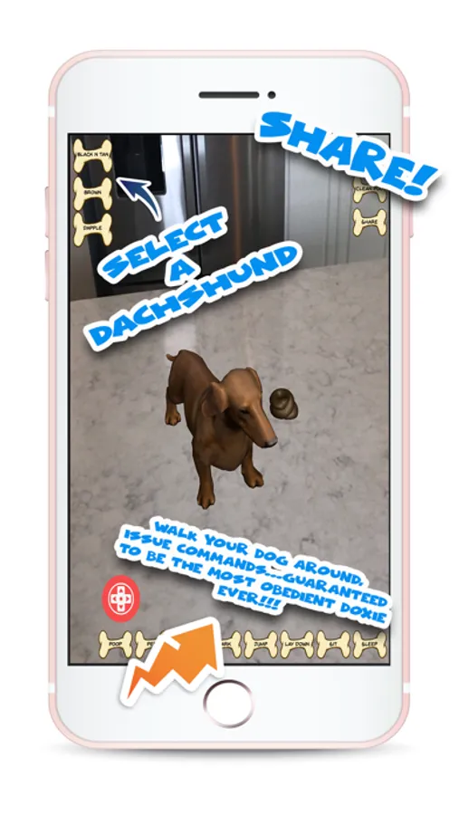 What's better than playing with a Dachshund? Playing with an Augmented Reality Dachshund of course! Get your Dachshund craze on with these adorable doggies. Our dogs will walk around your house, dorm room and terrorize any cats or squirrels in the area...